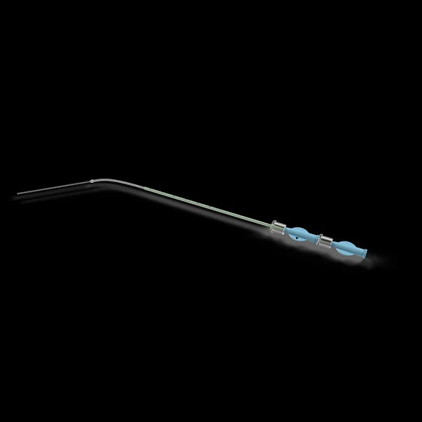Katetern består av ett 17 cm formbart, mikro-rör av stål med diameter 0,5 mm som är inuti